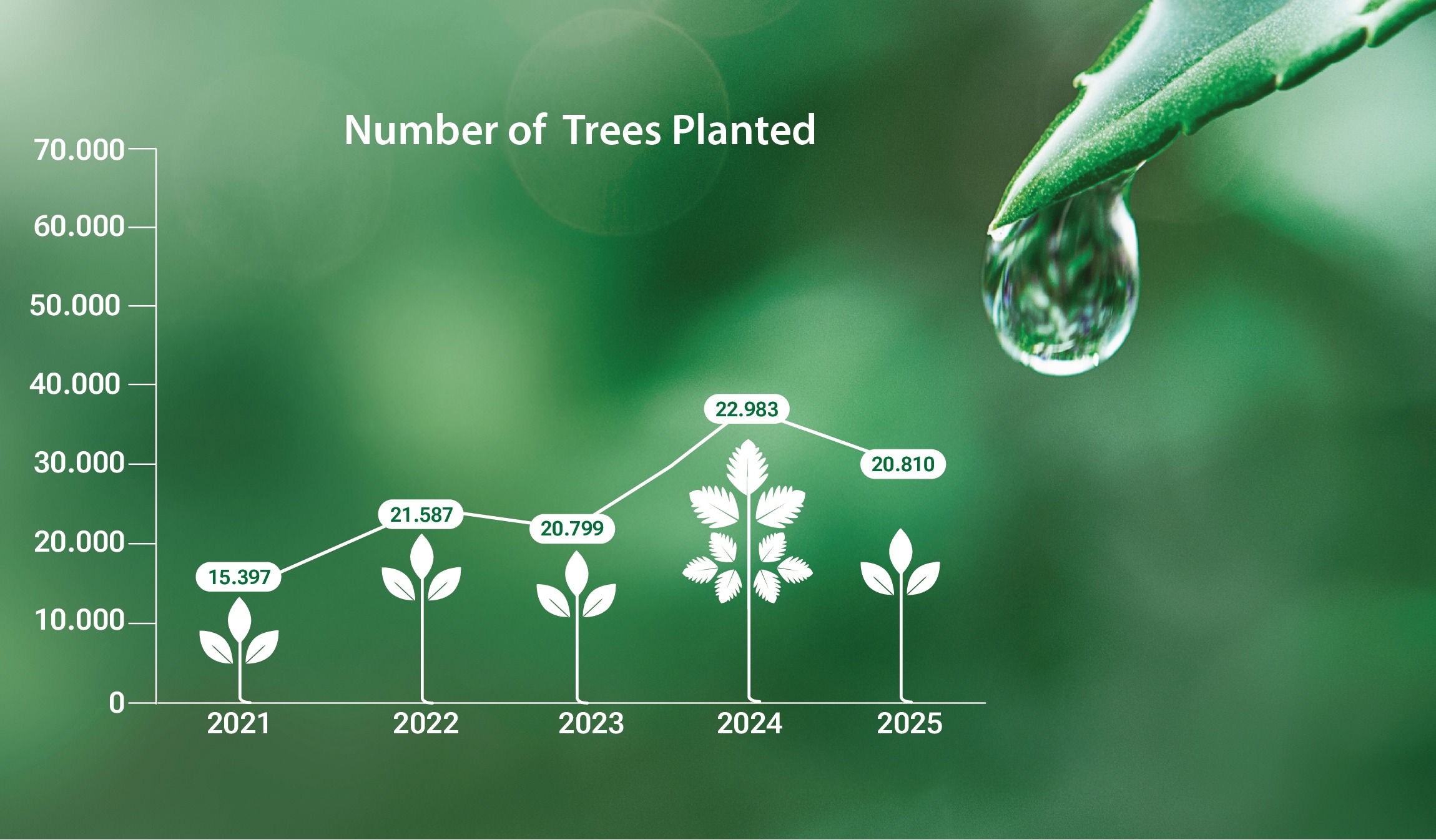 Through the recovery of 598 million liters of vegetable oil, we prevented water pollution. In addition, our recycling initiatives helped prevent the cutting of 364,254 trees over the past eight years.